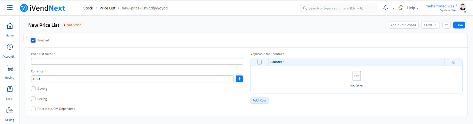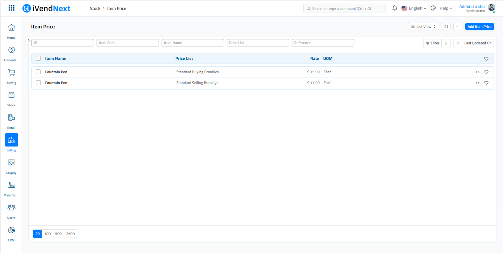 A Price List is used when you create an Item Price in iVendNext. This is done to track the selling or buying price of an item. You can create multiple Price Lists for an Item in iVendNext to track Selling and Buying Price of an Item separately.