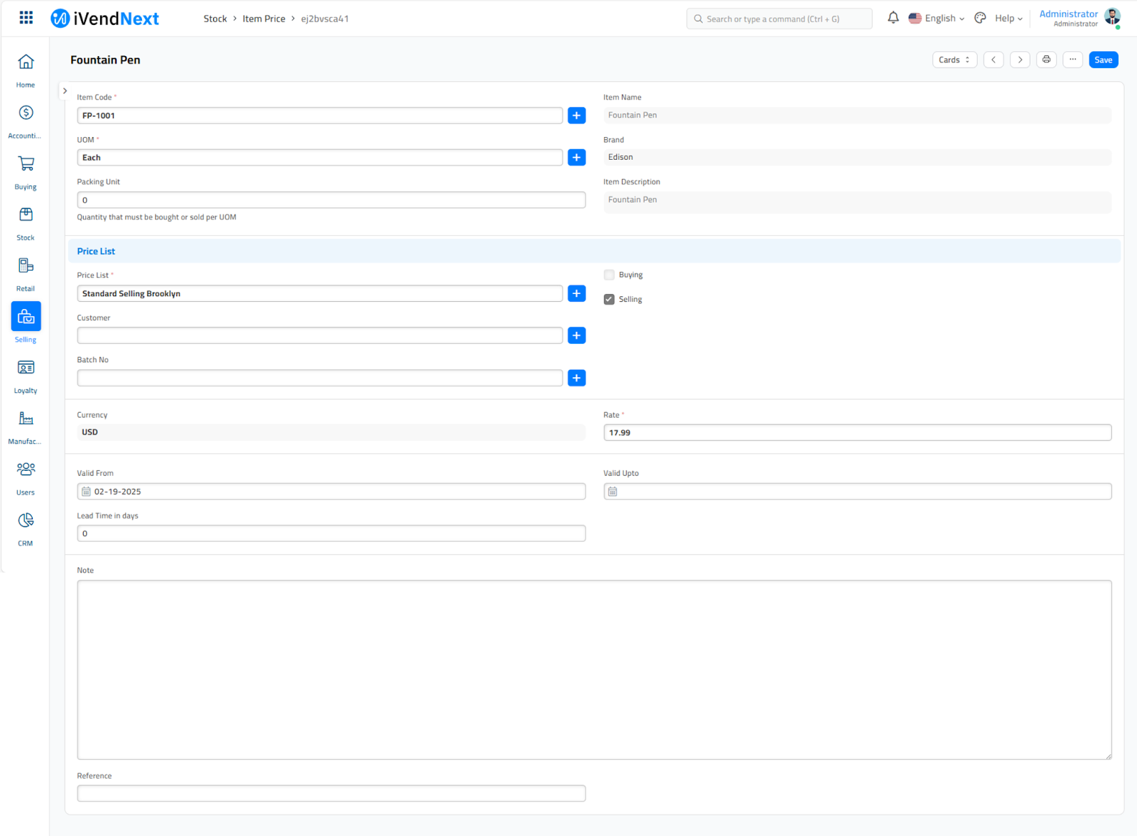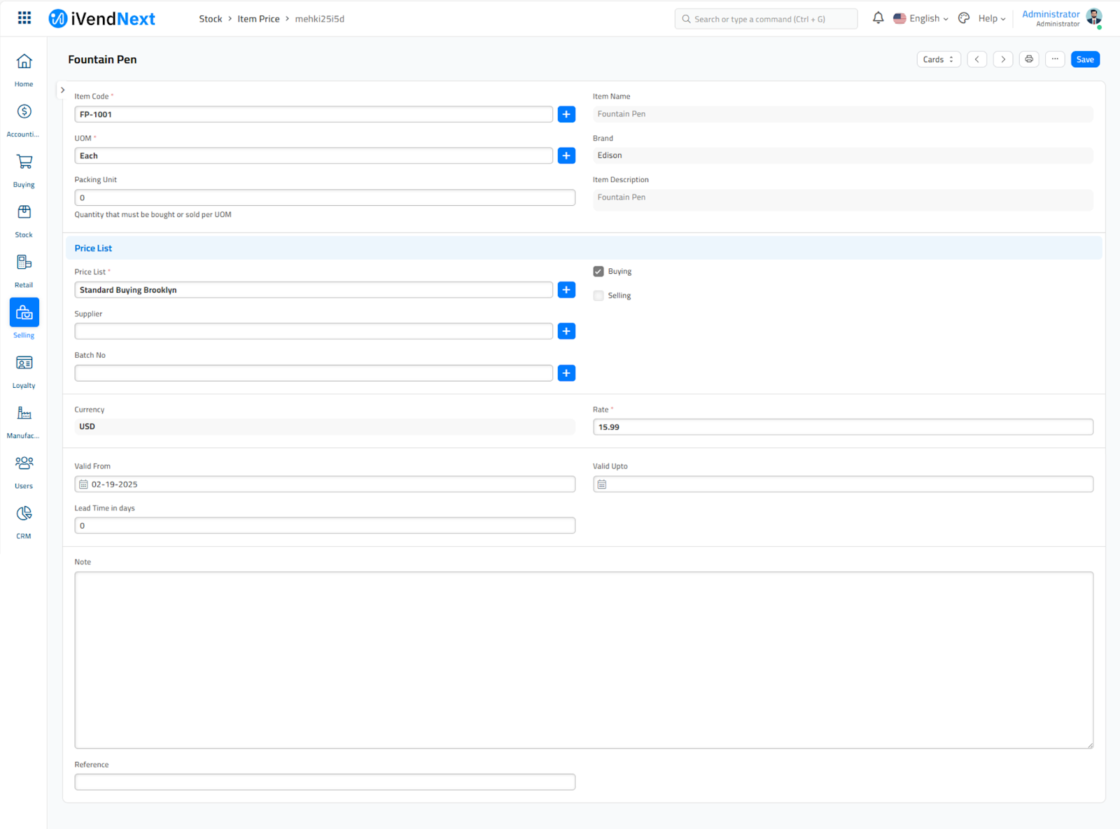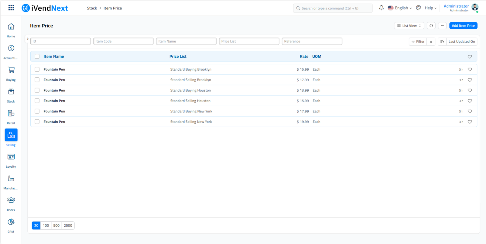 iVendNext lets you maintain multiple Selling and Buying Item Prices using Price Lists.