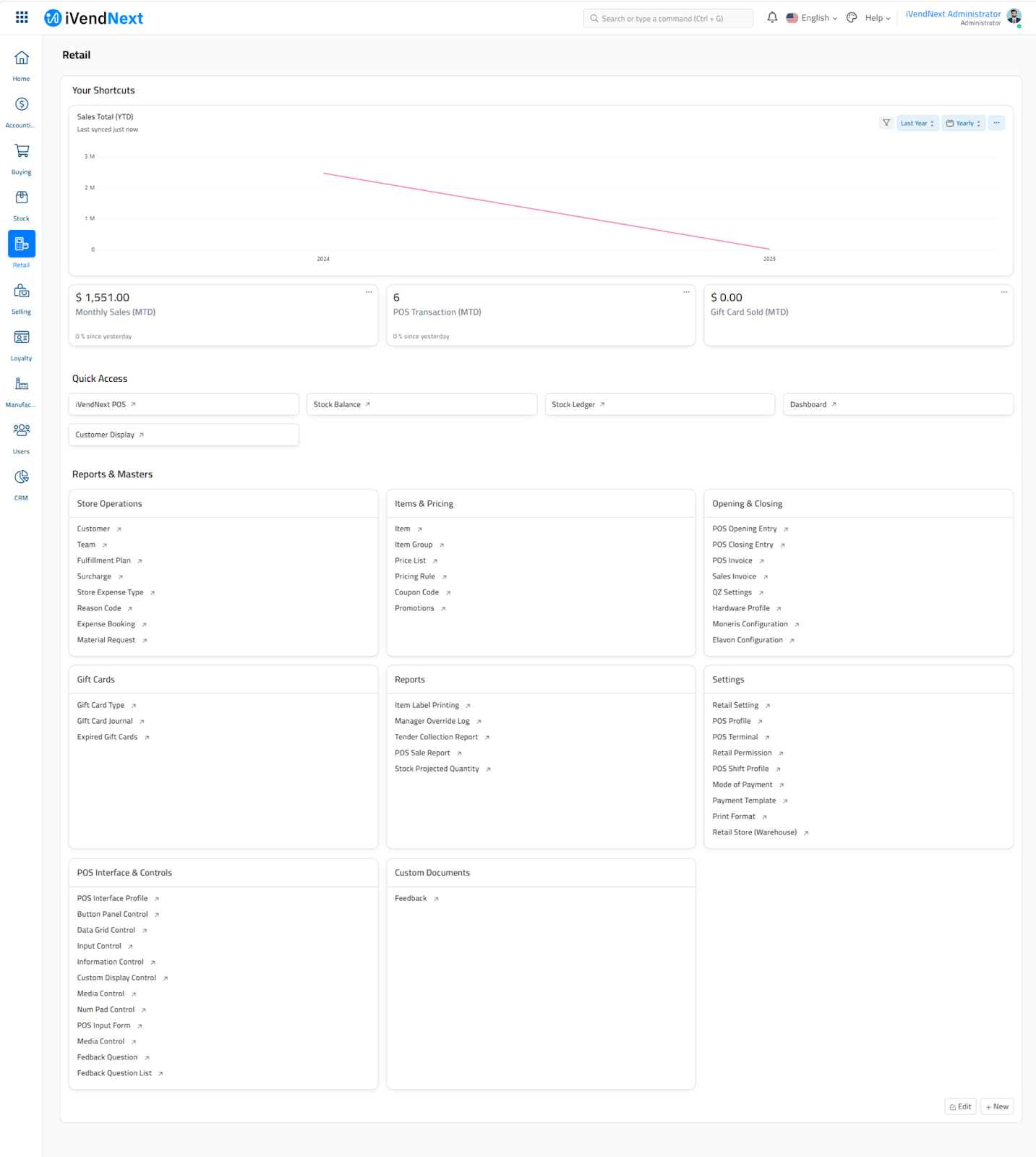 Navigate to: Home > Retail. Click on the iVendNext POS shortcut. This will open the iVendNext POS screen.