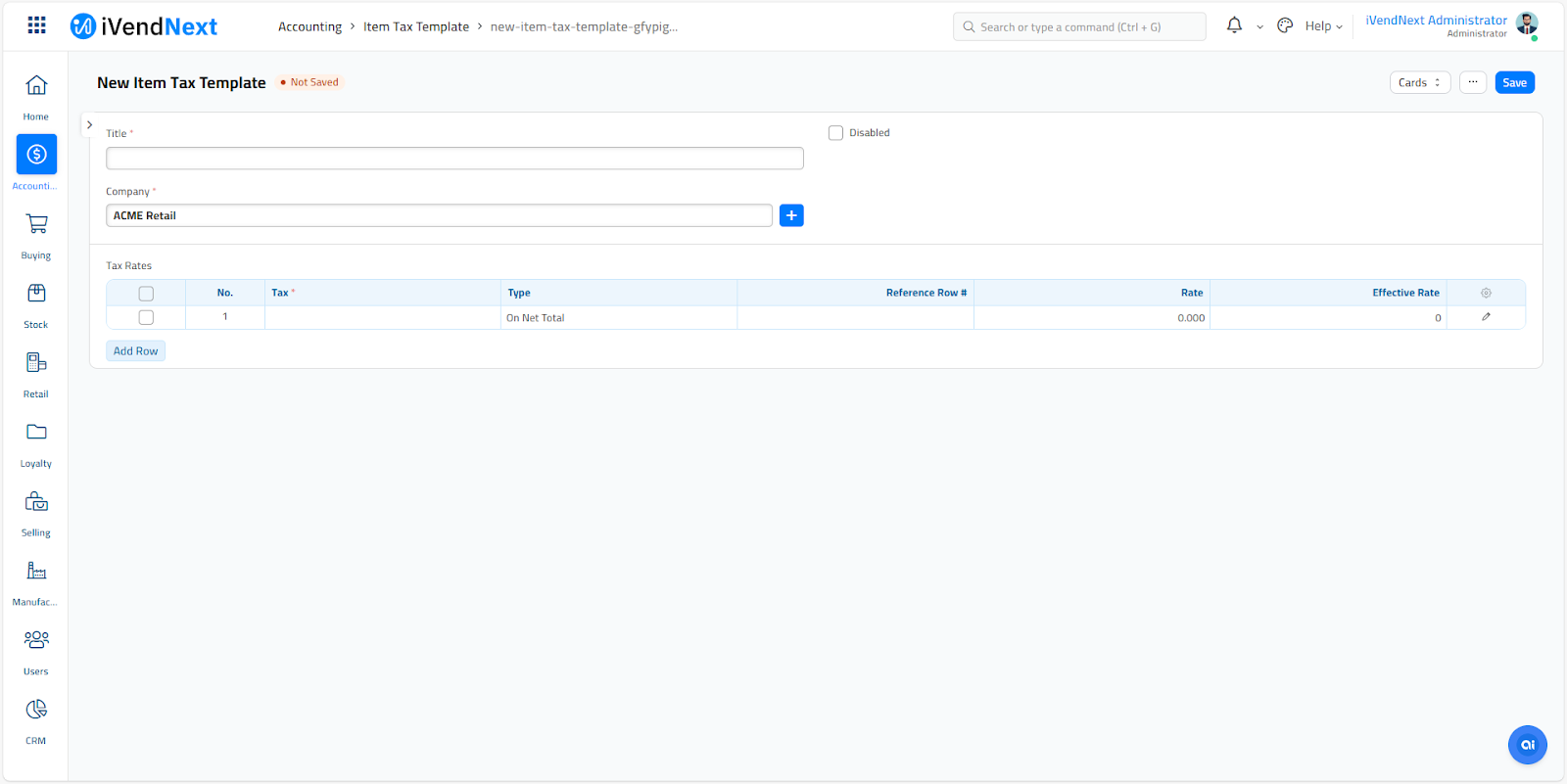 Note: For Item Tax Template to work, you need to ensure that the tax types (accounts) set in Item Tax Template (with changed tax rates) are present in the Sales Taxes and Charges Template.